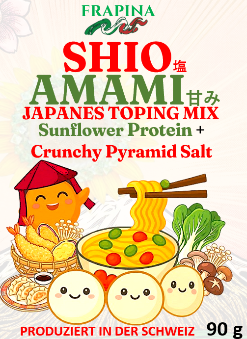 Verrgiss alles, was du über klassische Toppings weisst. Wir haben den Geschmack Japans neu interpretiert. SHIO (Salz) trifft auf AMAMI (Süsse) eine Symbiose, die deine Gerichte nicht nur veredelt, sondern revolutioniert.